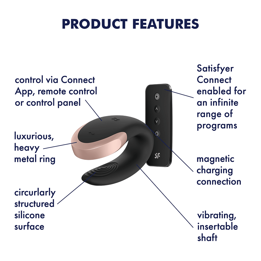 Он не просто изготовлен из силикона и вставки, стилизованной под драгоценный металл, но и открывает бесконечные возможности для экспериментов с приложением Satisfyer: управление пальцем и голосом, вибрация в ритме музыки, создание собственных режимов и доступ к огромной библиотеке оригинальных паттернов. Еще больше возможностей, чем в предыдущих моделях!